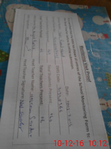 | Monitoring Date: 10-12-2016 | Start Time: 10-12-2016 09:56 AM | End Time: 10-12-2016 10:18 AM | Name of MEA: Mu**** Am**** Ra**** | |