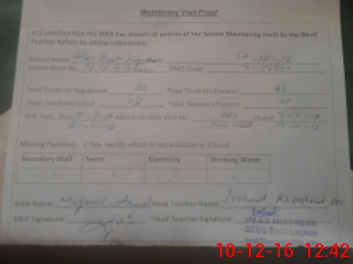 | Certified that this School was Inspected by the Undersigned MEA/DMO Today and the Information Stated Above is as Per Record. | |||||