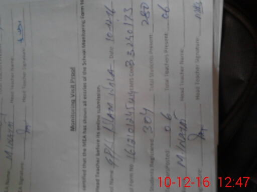 | Attendance Register | Head Teacher | MEA with School | Visit Proof |