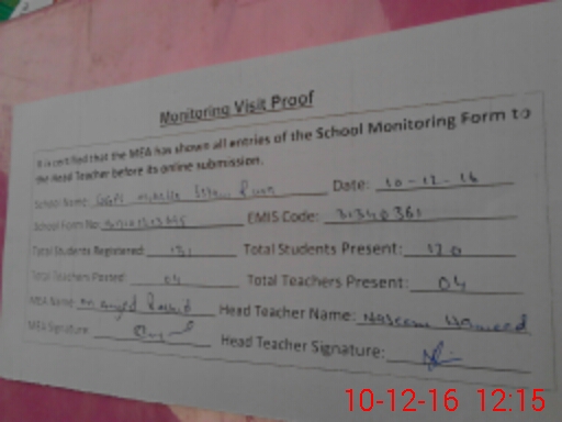 | Attendance Register | Head Teacher | MEA with School | Visit Proof |