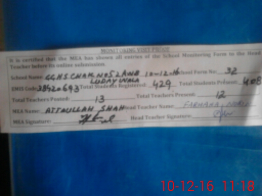 | EMIS Code: 38420693 | Name of School: GGHS CHAK NO.52 A-NB LUDAY WALA | |||