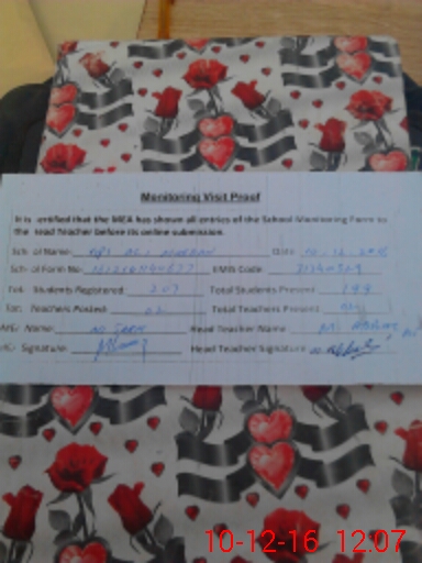 | Certified that this School was Inspected by the Undersigned MEA/DMO Today and the Information Stated Above is as Per Record. | |||||