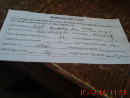 | Attendance Register | Head Teacher | MEA with School | Visit Proof |
