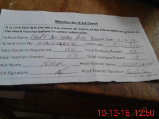 | Certified that this School was Inspected by the Undersigned MEA/DMO Today and the Information Stated Above is as Per Record. | |||||