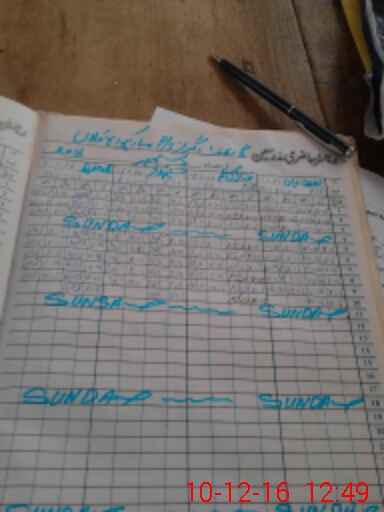 | CNIC | Full Name | Designation | R/C | Absence During Last Calender Month |