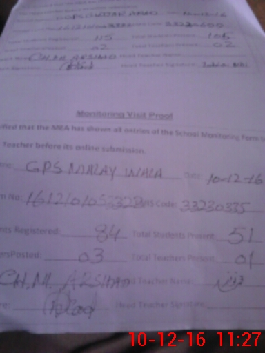 | Certified that this School was Inspected by the Undersigned MEA/DMO Today and the Information Stated Above is as Per Record. | |||||