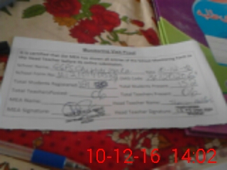 | Attendance Register | Head Teacher | MEA with School | Visit Proof |
