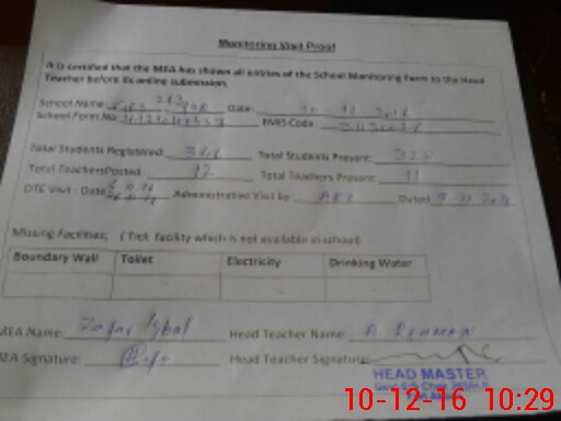 | Certified that this School was Inspected by the Undersigned MEA/DMO Today and the Information Stated Above is as Per Record. | |||||
