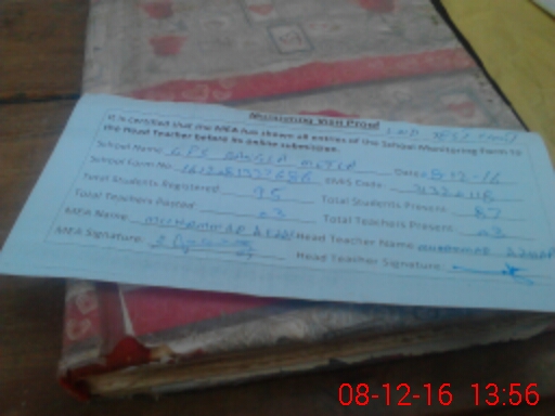 | Attendance Register | Head Teacher | MEA with School | Visit Proof |