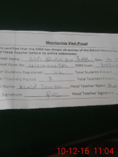 | EMIS Code: 31330767 | Name of School: GGPS QADAR BUX SUPPLAN | |||