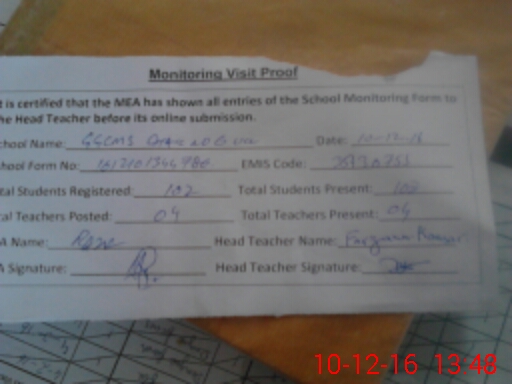 | EMIS Code: 35430755 | Name of School: GGCMS CHAK NO 6 UCC | |||