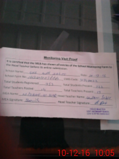 | Monitoring Date: 10-12-2016 | Start Time: 10-12-2016 09:34 AM | End Time: 10-12-2016 10:06 AM | Name of MEA: Mu**** Iz**** UlHa**** | |