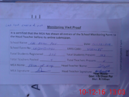 | Certified that this School was Inspected by the Undersigned MEA/DMO Today and the Information Stated Above is as Per Record. | |||||