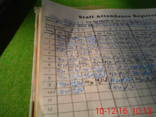| CNIC | Full Name | Designation | R/C | Absence During Last Calender Month |