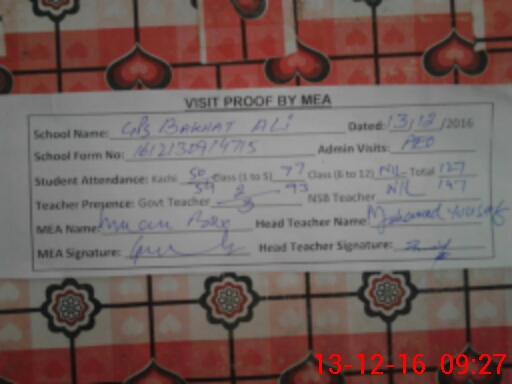 | EMIS Code: 32430031 | Name of School: GPS BAKHAT ALI | |||