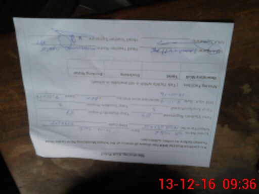 | Monitoring Date: 13-12-2016 | Start Time: 13-12-2016 09:04 AM | End Time: 13-12-2016 09:39 AM | Name of MEA: Za**** BN**** | |