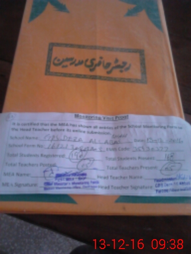 | EMIS Code: 35430377 | Name of School: GPS DERA ALI ABAS SHAH | |||