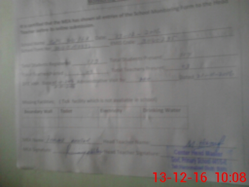 | Certified that this School was Inspected by the Undersigned MEA/DMO Today and the Information Stated Above is as Per Record. | |||||