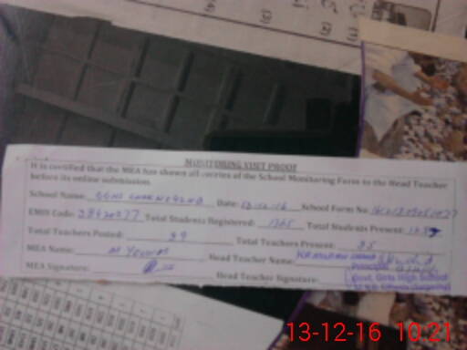 | Attendance Register | Head Teacher | MEA with School | Visit Proof |