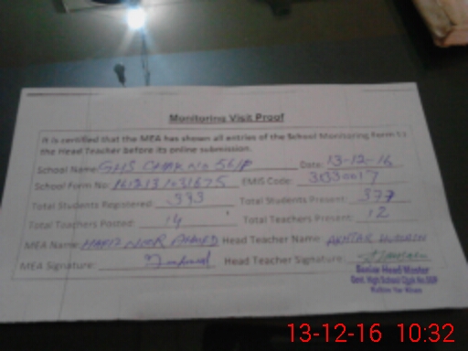 | EMIS Code: 31330017 | Name of School: GHS CHAK NO. 56/P | |||