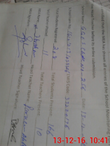 | Certified that this School was Inspected by the Undersigned MEA/DMO Today and the Information Stated Above is as Per Record. | |||||
