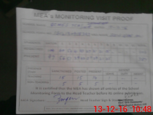 | Attendance Register | Head Teacher | MEA with School | Visit Proof |