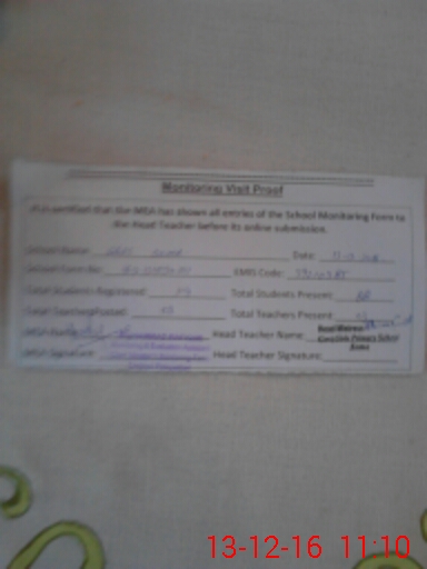 | Attendance Register | Head Teacher | MEA with School | Visit Proof |