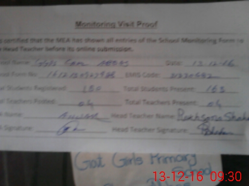 | Attendance Register | Head Teacher | MEA with School | Visit Proof |
