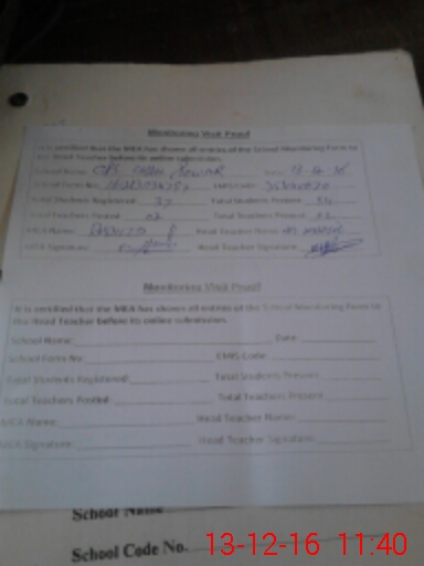 | Attendance Register | Head Teacher | MEA with School | Visit Proof |