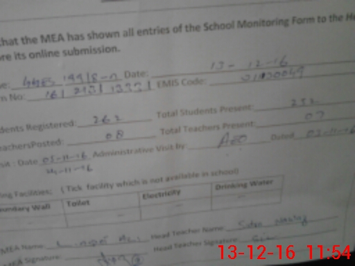 | Certified that this School was Inspected by the Undersigned MEA/DMO Today and the Information Stated Above is as Per Record. | |||||
