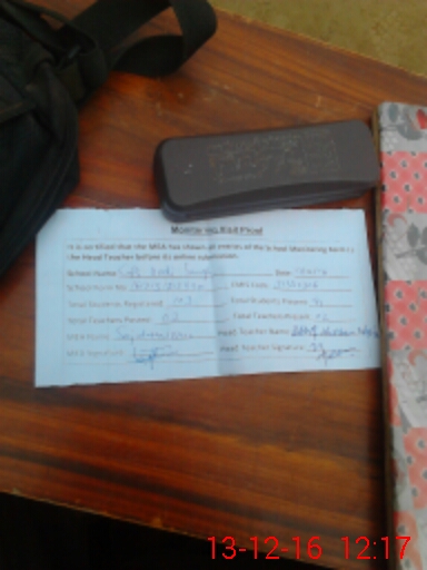 | Attendance Register | Head Teacher | MEA with School | Visit Proof |