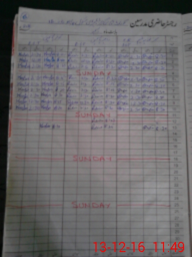 | CNIC | Full Name | Designation | R/C | Absence During Last Calender Month |