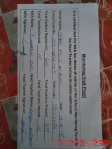 | Attendance Register | Head Teacher | MEA with School | Visit Proof |