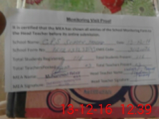 | Attendance Register | Head Teacher | MEA with School | Visit Proof |