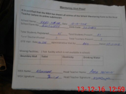 | Certified that this School was Inspected by the Undersigned MEA/DMO Today and the Information Stated Above is as Per Record. | |||||