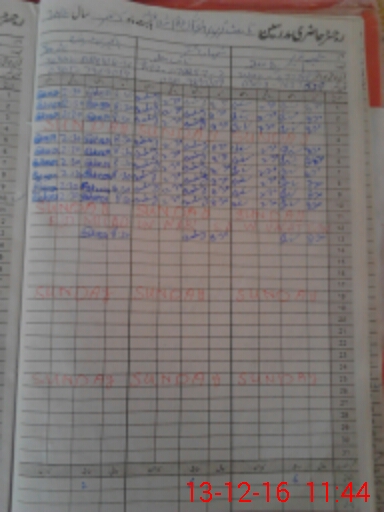 | CNIC | Full Name | Designation | R/C | Absence During Last Calender Month |