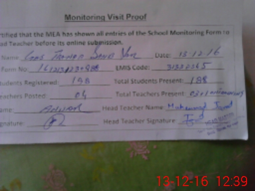 | Certified that this School was Inspected by the Undersigned MEA/DMO Today and the Information Stated Above is as Per Record. | |||||