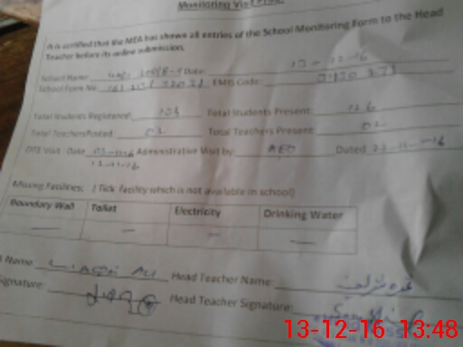 | Certified that this School was Inspected by the Undersigned MEA/DMO Today and the Information Stated Above is as Per Record. | |||||