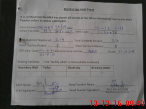 | Certified that this School was Inspected by the Undersigned MEA/DMO Today and the Information Stated Above is as Per Record. | |||||