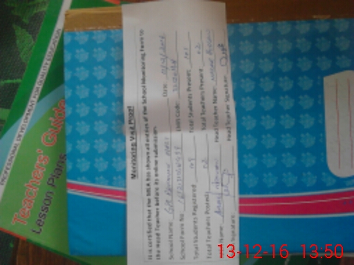 | Attendance Register | Head Teacher | MEA with School | Visit Proof |