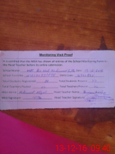 | Certified that this School was Inspected by the Undersigned MEA/DMO Today and the Information Stated Above is as Per Record. | |||||