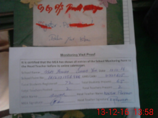 | Certified that this School was Inspected by the Undersigned MEA/DMO Today and the Information Stated Above is as Per Record. | |||||