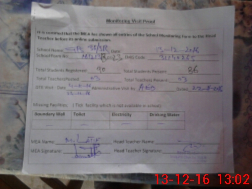 | Name: Za**** Fa**** Designation: (School Headmaster's/Headmistress's) PST Phone/Cell Number: 03**** |