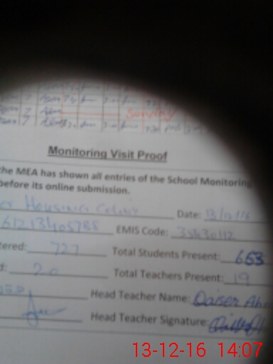 | Certified that this School was Inspected by the Undersigned MEA/DMO Today and the Information Stated Above is as Per Record. | |||||