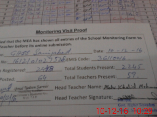 | EMIS Code: 36110016 | Name of School: GHSS SAMEEJABAD MULTAN | |||