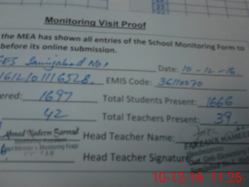 | EMIS Code: 36110070 | Name of School: GGES SAMIJABAD NO.1 MULTAN | |||