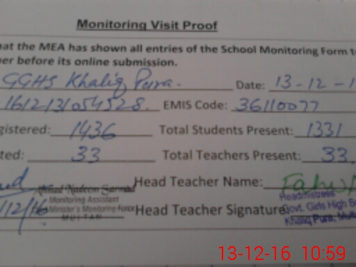 | EMIS Code: 36110077 | Name of School: GGHS KHALIQUE PURA KHALIQUE PURA | |||