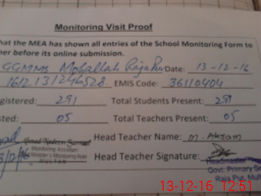 | EMIS Code: 36110404 | Name of School: GPS MOHALLAH RAJAPUR | |||