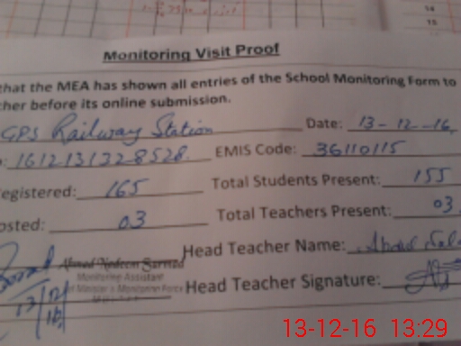 | Attendance Register | Head Teacher | MEA with School | Visit Proof |