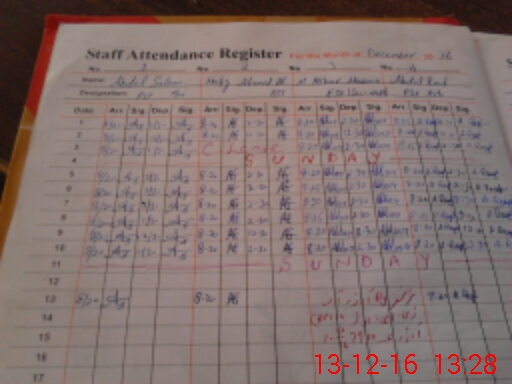 | CNIC | Full Name | Designation | R/C | Absence During Last Calender Month |